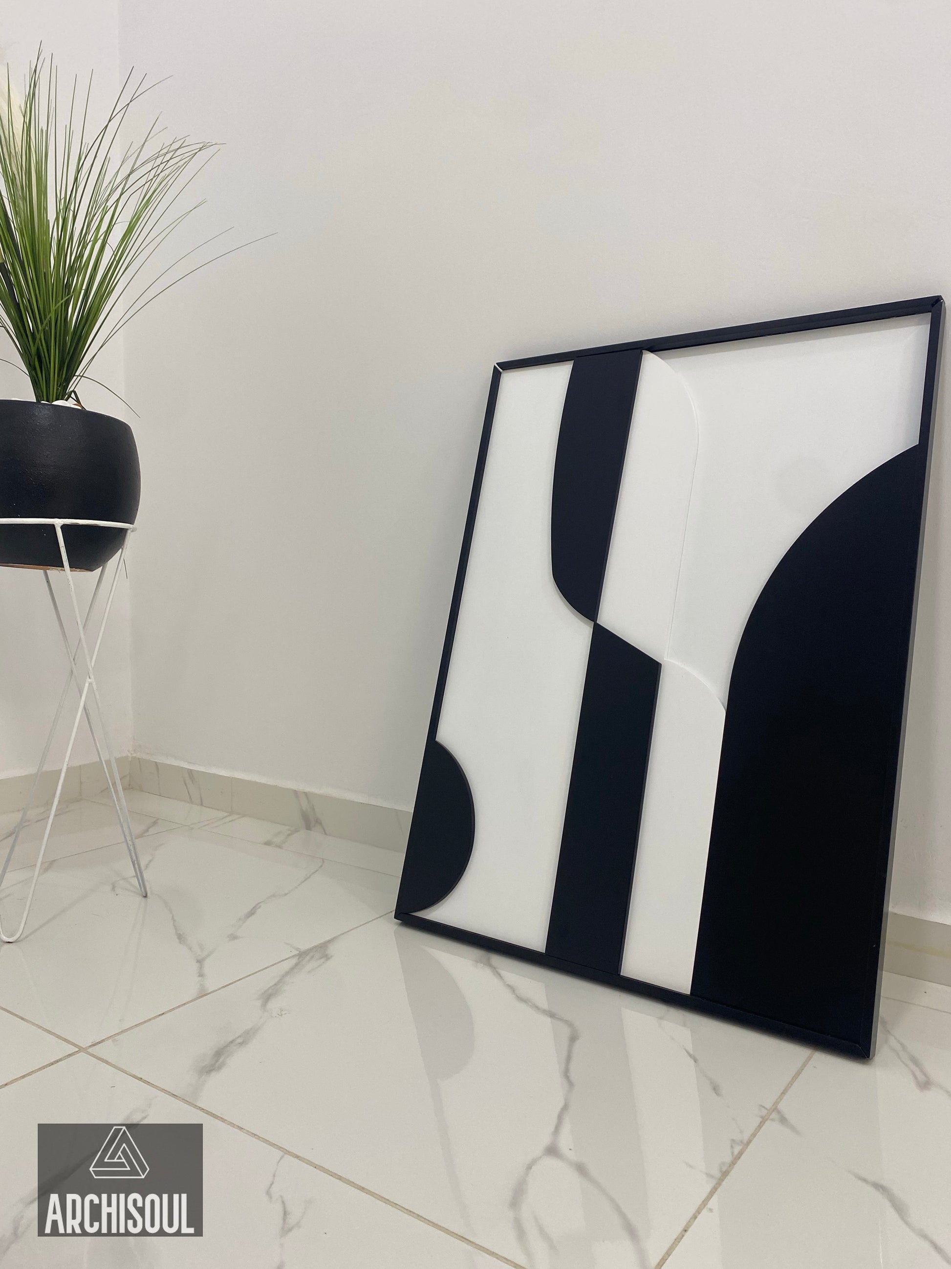 Création artisanale : Chaque pièce a été pensée et créée entièrement du début à la fin. Tout d’abord dessiné, ce tableau aux lignes graphiques et minimalistes peut sublimer tous les types d’intérieurs grâce à ces formes harmonieuses et son volume en 3D.