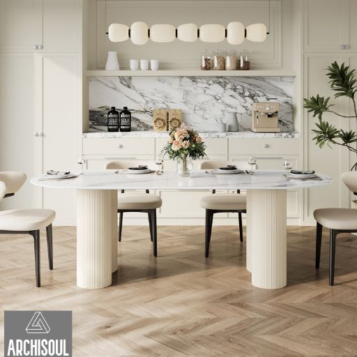 Découvrez notre table à manger VENEZIA, avec ses pieds originaux et son plateau en marbre. Ajoutez une touche de sobriété et de tendance à votre salle à manger. Parfait pour les dîners en famille ou les soirées entre amis !